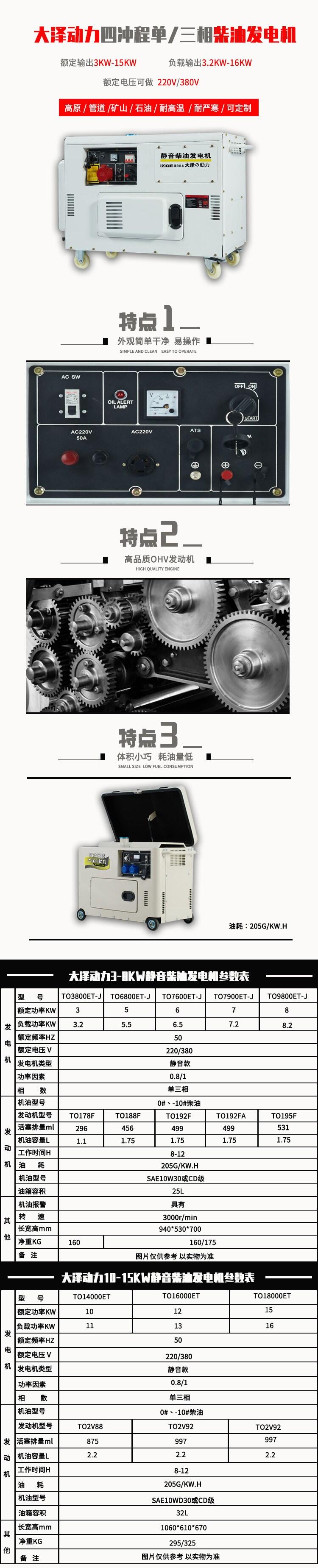 大泽柴油发电机是由内燃机驱动的发电机。柴油发电机是由柴油机和发电机组成,柴油机作动力带动发电机发电,启动迅速,操作方便,噪音较大,动力较足,适用于工地,建筑:不适用于公共人多场合。