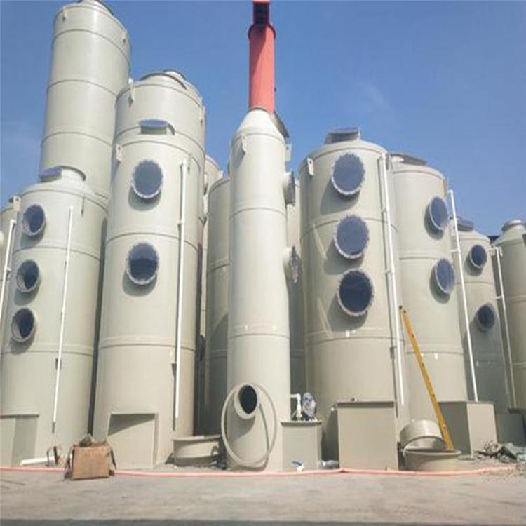 不锈钢喷淋塔结构采用喷雾塔填料层作为气液两相接触元件的传质设备。填料支撑板设置在填料塔底部,填料以堆叠方式排列在支撑板上。填料压力板安装在填料上方,以防止向上气流吹出。喷雾塔从塔顶喷出液体,通过液体分布器到达填料,并沿填料表面向下流动。气体从塔底分布后,液体通过填料层的空隙连续逆流。在填料表面,气液两相紧密接触,进行传质。当液体沿填料层流动时,有时会有壁面流动。壁面流动效应导致气液两相在填料层中的分布不均匀,导致传质效率下降。因此,将喷雾塔中的填料层分成两部分,中间设置有再分配装置,再分配后再喷洒到下部填料上。