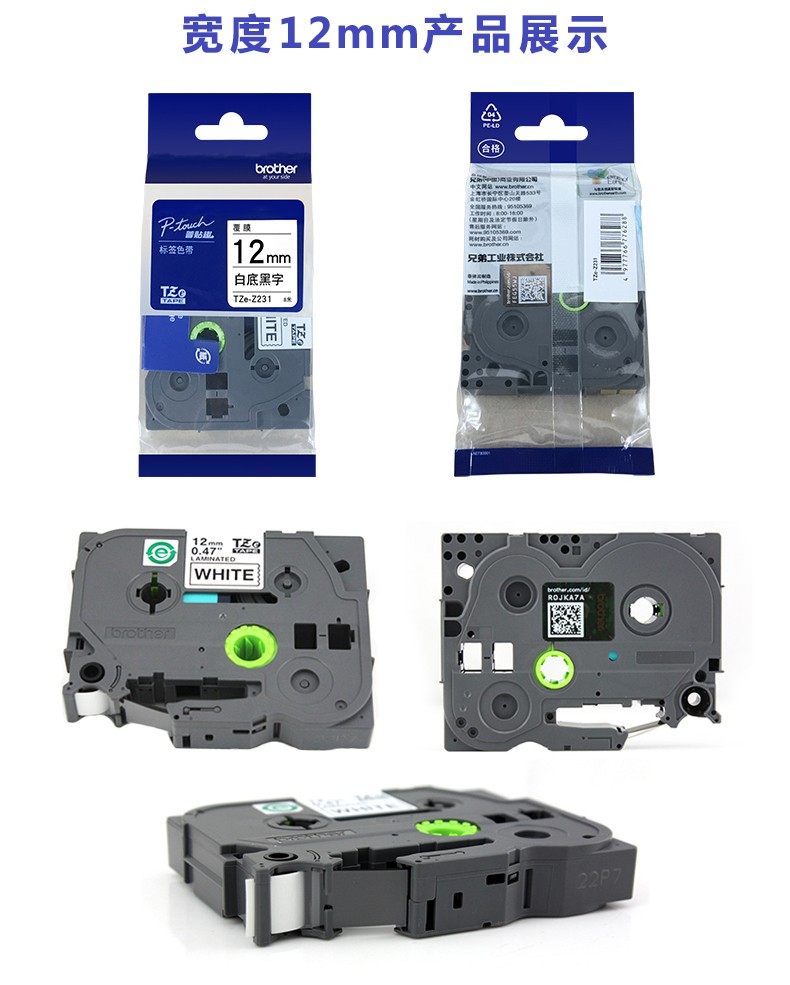 兄弟牌12mm旗帜式线缆标识tze-fx631标准覆膜标签色带