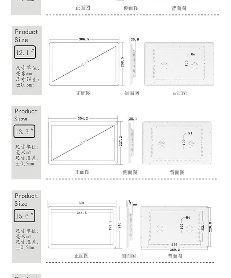 感应范围 | 自动化设备,车间看板,工业显示器 | ||
