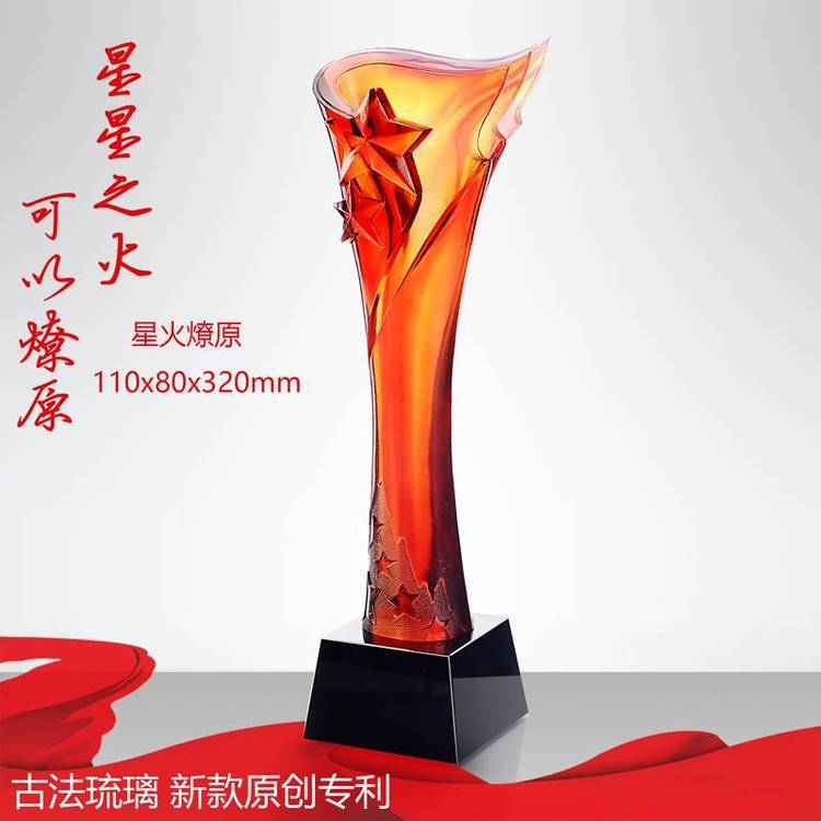 五角星奖杯,是表彰在工作中有突出贡献或者 表现的员工,火炬图形表示激励员工努力拼博 烯烧青春 实现梦想。