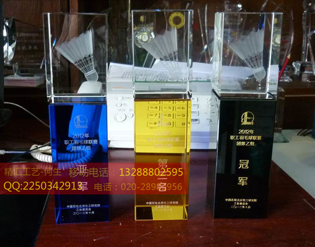 随着体育运动的蓬勃发展和人们对体育竞赛兴趣的日渐高涨,人们又将奖杯作为奖品赠送给体育竞赛中的优胜者,以示祝贺。羽毛球水晶奖杯制作女子团体羽毛球锦标赛,男子团体羽毛球锦标赛。羽毛球混合团体比赛水晶奖杯广东深圳奖杯奖牌,深圳奖杯奖牌制作,广东深圳定做奖杯奖牌,广东深圳水晶奖杯奖牌加工,我公司专业制作各种水晶工艺品,各种款式的水晶工艺品,水晶奖杯奖牌款式有上百种,是企业/公司/单位首选基地,公司坚持“顾客至上,以量求利”为宗旨。产品畅销国内外,深受国内外客商和消费者好评。将以新颖的款式,精细的工艺,上乘的质量,合理的价格,优质销售服务来赢得更多客户的青睐。热忱欢迎国内外客商光临指导、洽谈业务! 欢迎来样、来图制作!欢迎光临或垂电。