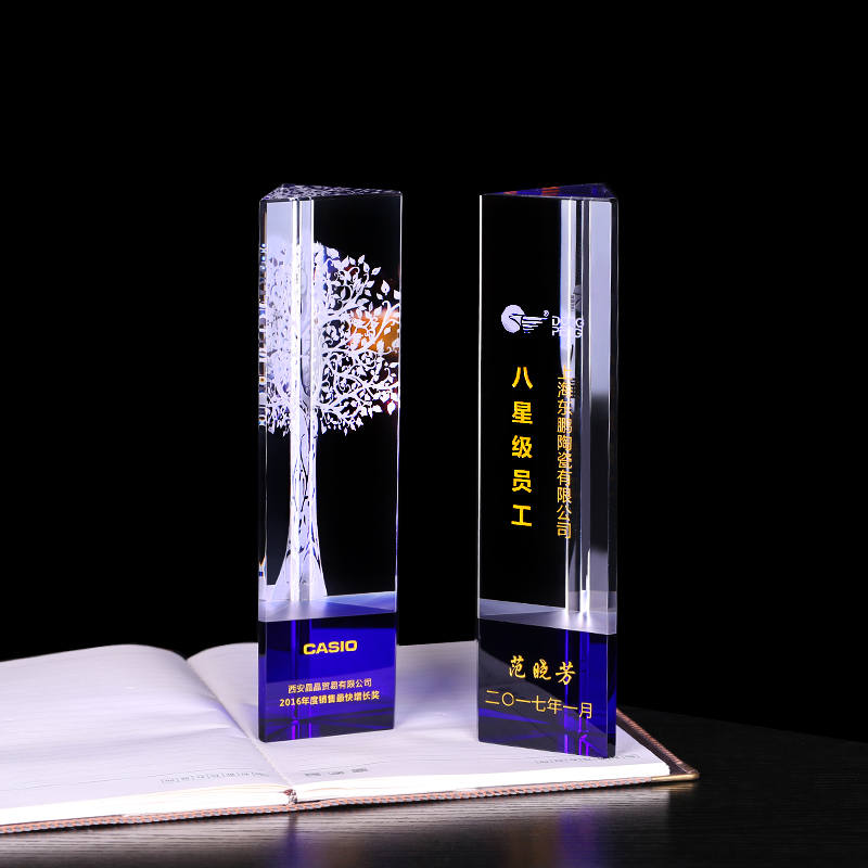 优秀单位奖杯 是发给单位集体的一种荣誉称号,单位是指机关、团体、法人、企业等非自然人的实体或其下属部门。评选优秀单位活动也是各政府部门每年都要举行的活动,一般都是上级单位发给下级单位比较多见,奖励形式也可以选用奖牌和奖杯两种。本款优秀单位奖杯是采用水晶材料制作,杯底采用黑色大理石。奖杯底座可以根据奖项要求在上面雕刻图案文字。