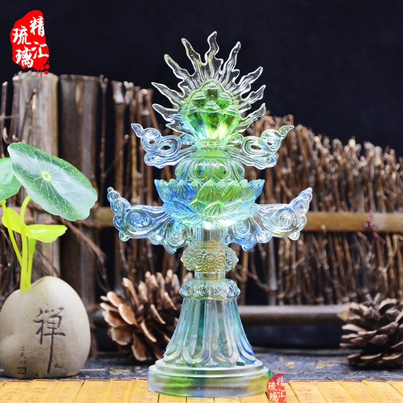 2.主藏宝:又称摩尼宝、珠宝。雍和宫的这一模型为山形的三颗彩珠,表示佛教端严殊妙、圆明光莹。
