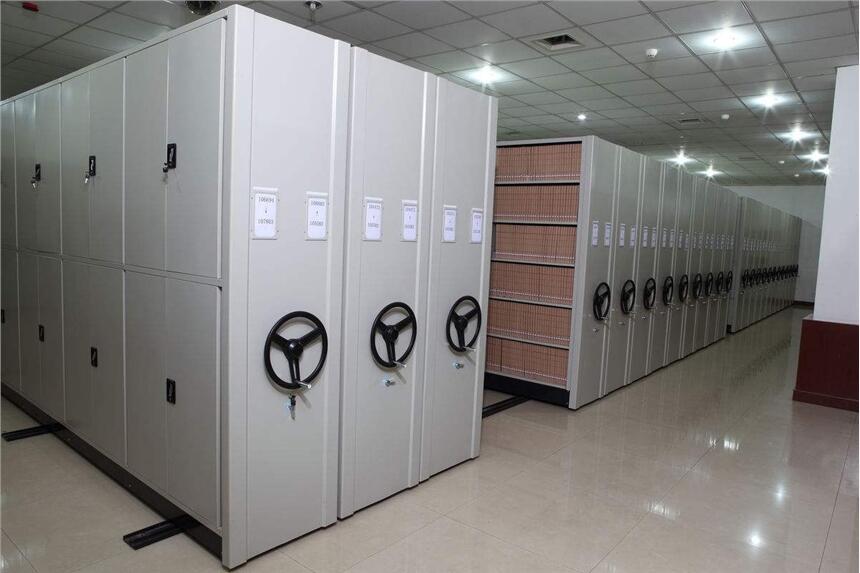 移动密集架主要用于档案资料、证券凭证等的存放,具保密封闭、空间利用率高、存取方便的优点。