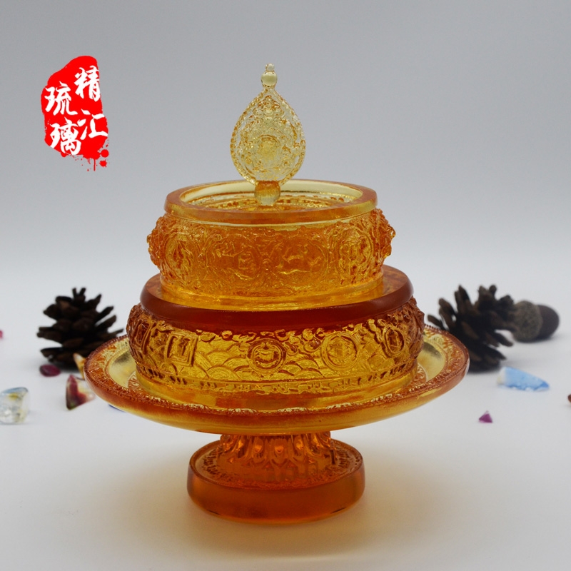 产品说明:曼扎盘, 又称曼扎或曼茶罗,是藏文音译,是藏传佛教中常见的法器。象征把整个宇宙缩小在上面,加以实物,观想而作供养,是密宗迅速积聚福德与智慧的巧妙方法。