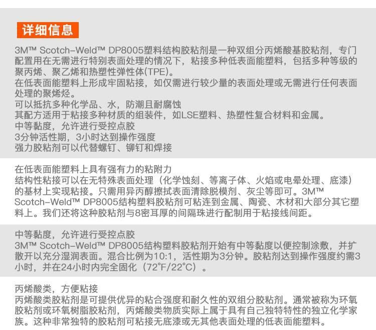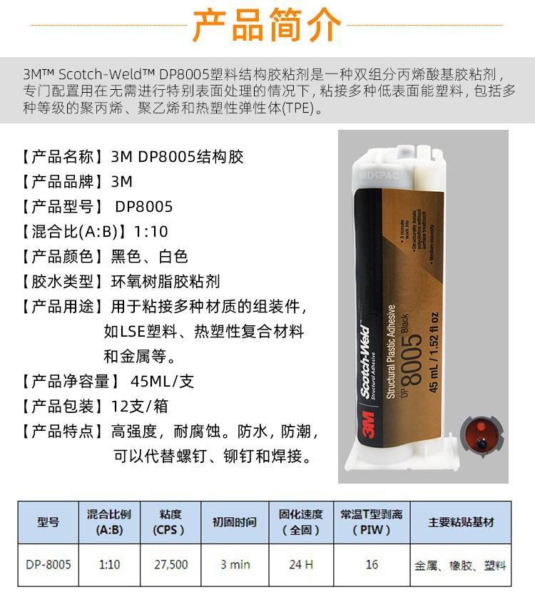 3M DP8005环氧树脂AB胶 PP PE POM尼龙塑料金属结构胶粘合剂