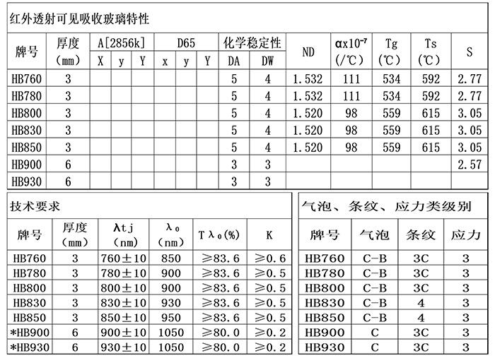 红外透射玻璃,红外透射可见吸收玻璃HB930透过的波段930-2500纳米,红外光学滤光片HB930波长的范围200-2500纳米。滤光片930nm(长波红外玻璃)材质选用的是有色光学玻璃,HB930牌号的有色玻璃适用于各种光学设备等应用领域。
