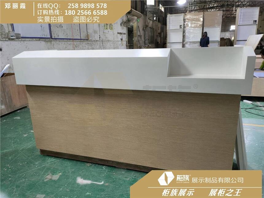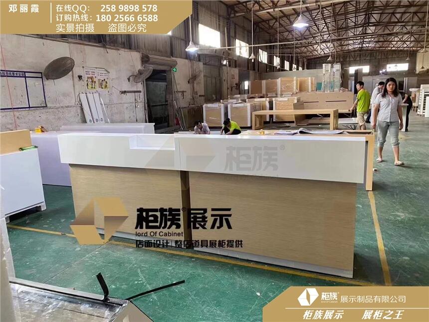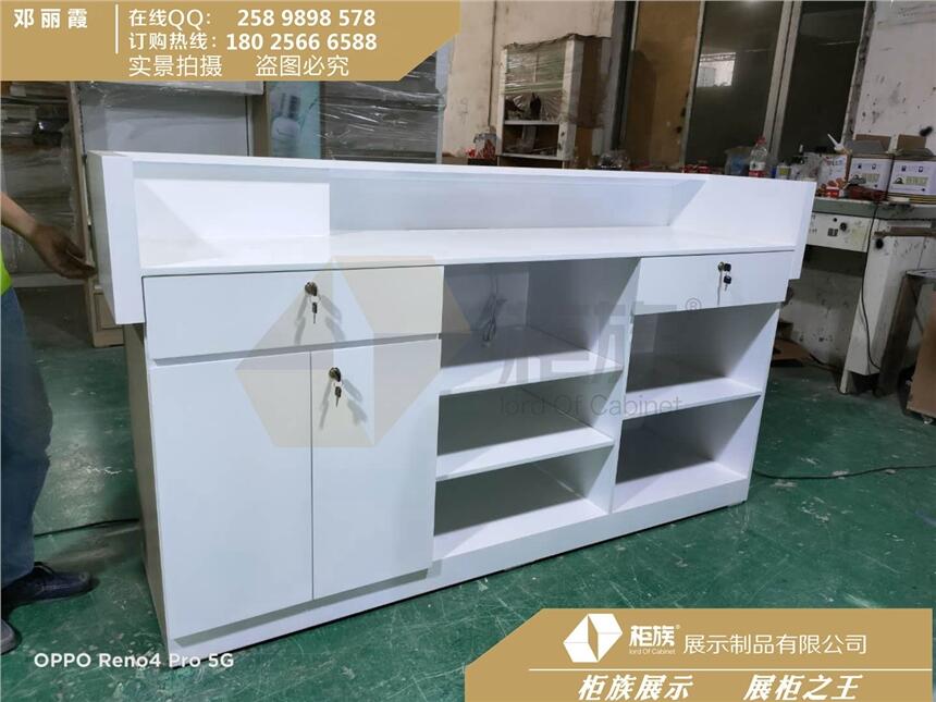 部分收银台标准尺寸有现货可三天内发货,配件柜款式多种选择,可定制,灯箱画面可更换