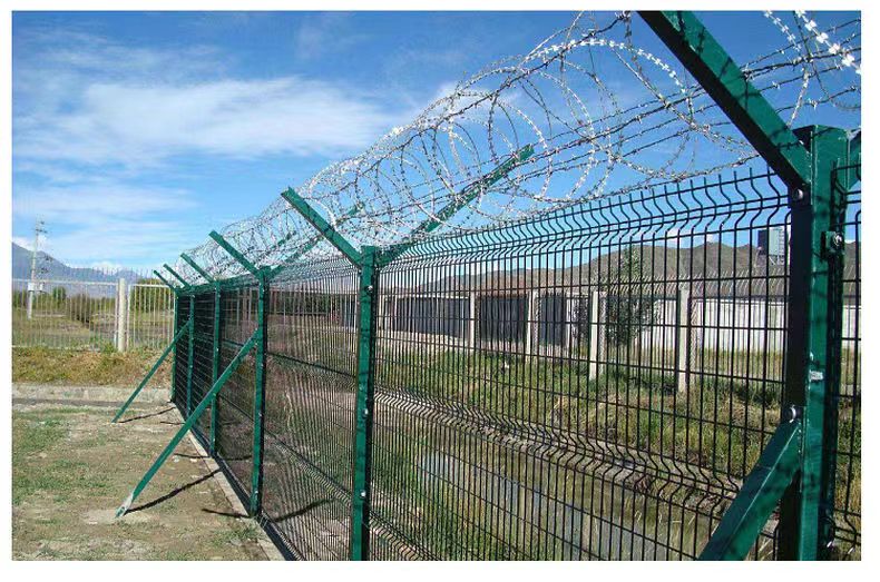 机场边境带刺圈防护围栏Y型柱密孔防攀爬隔离护栏浸塑框网栅栏