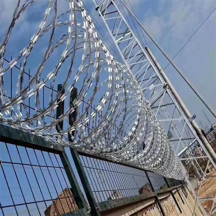 刀片铁丝网绳也称为刀片刺丝、刀片刺网,是一种新式防护网。刀片刺绳具有漂亮、经济实用、防阻作用好、施工方便等优良特色。