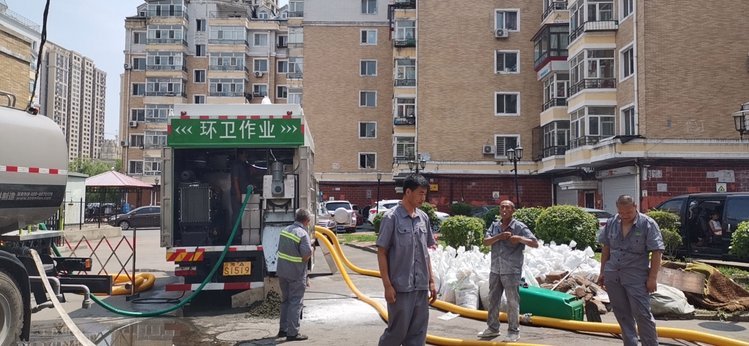 6.黑臭水不再满溢倒灌,还能变废为宝,在化粪池清理现场,一根管连接化粪池,对化粪池粪污不断的进行抽取,而车位则不断吐出黑褐色干渣,另一根管则排出清水,施工现场无异味,也无渗漏。