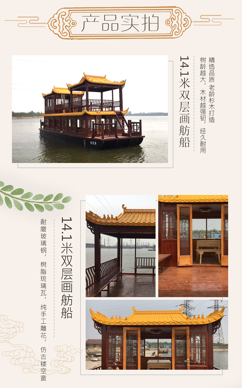 画舫船电动仿古大型观光旅游景区游览接待房屋餐饮船定制