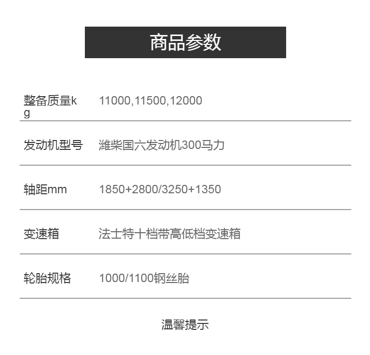 发动机马力 | 潍柴国六WP7.300E61马力 | ||