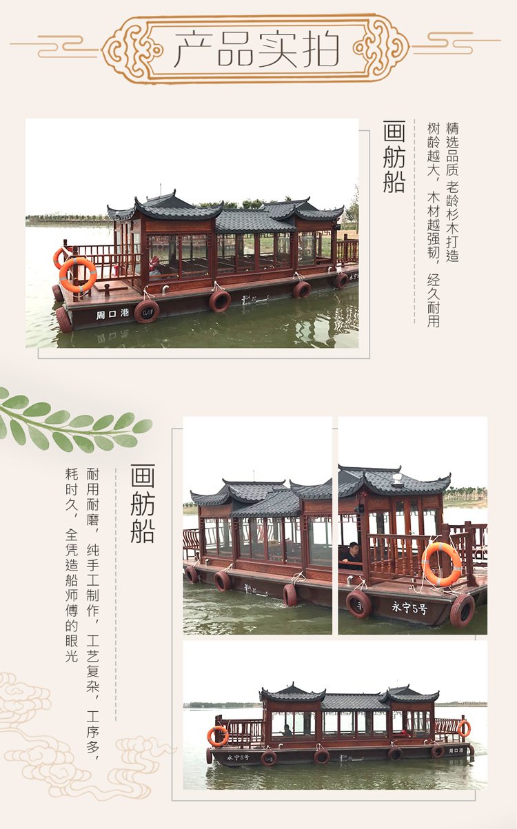 木已成舟牌10米玻璃钢电动画舫游船22人24游客木质画舫船大型游船厂家定制