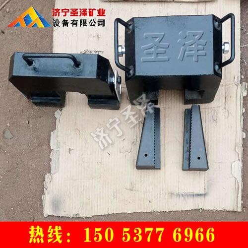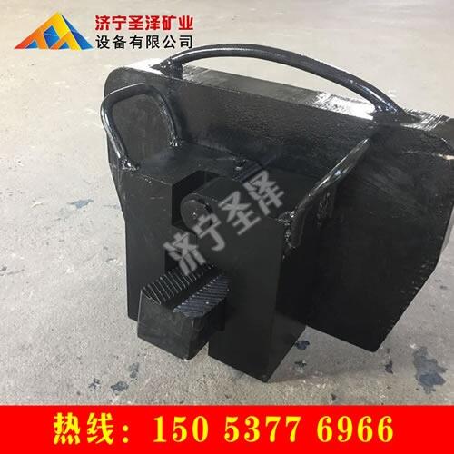 撞轨器由主体、垫板、斜铁及挂钩等结构件组成,其中主体、垫板、斜铁均由高强度合金钢整体锻造而成,并经调质热处理,因而,撞轨器整体强度高。