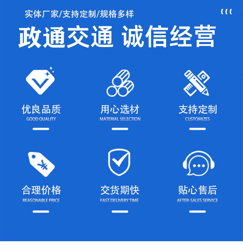 深州市政通交通设施有限公司,是一家专业致力于交通设施、安防设施、波形护栏、桥梁护栏、销售和维护的企业,产品有公路护栏、道路护栏、隔音屏、护栏板、等系列。我公司拥有,专业的核心队伍和严格的质量监管体系,对产品质量进行严格把控。