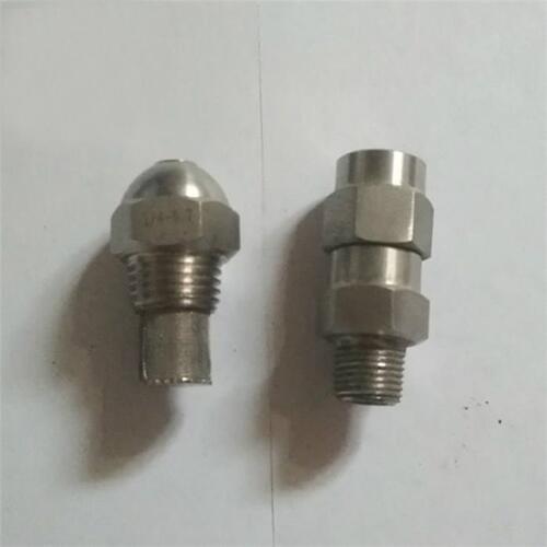 燃油喷嘴是雾化燃油用喷嘴,能产生空心、实心喷雾形状。一般是45度喷雾角度。该类型喷嘴在研究其流量和角度参数时,一般不要考虑其粘度和密度。一般工作压力在3kg,流量以L/h计算,不同的喷油喷嘴根据流量的不同配置相应类型的滤油网,流量在1.5L-1.7L/h配置45微米熔铜滤油网,流量在1.89 -3.78L时配置75微米熔铜滤油网,流量在4.76-5.10L/h时配置125微米熔铜滤油网,流量在5.68-41.64L/h时配置140微米莫混耳合金网,流量在45.42L/h以上时不配置滤油网。