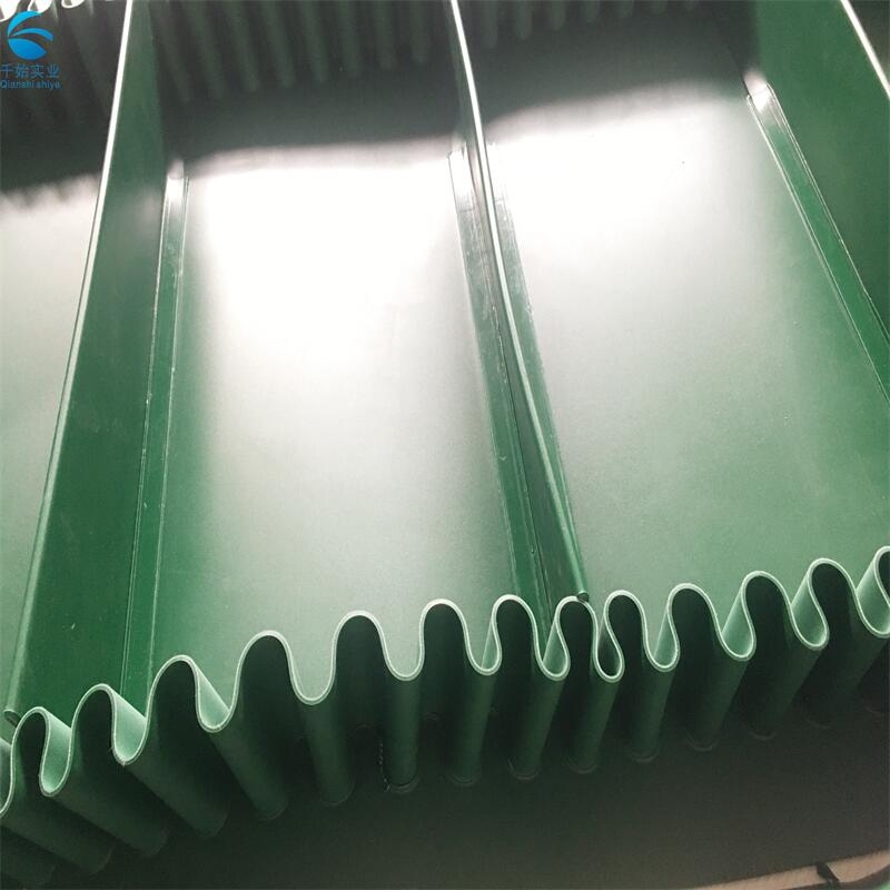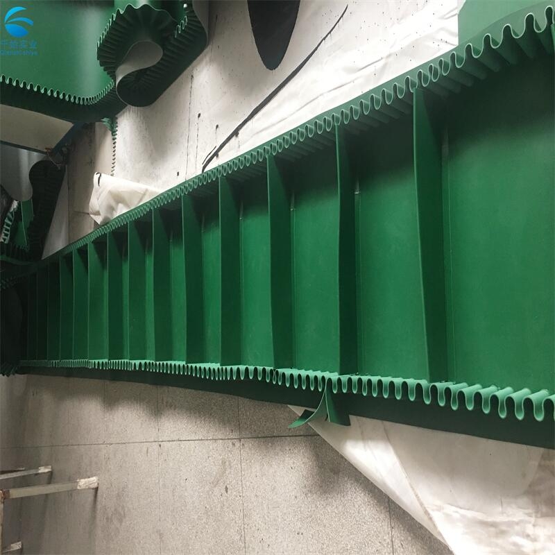 波状挡边输送带是采用裙边与隔板采用二次低温硫化粘接在基带上面。