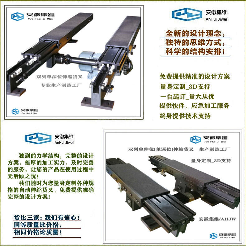 安徽集维智能装备有限公司[马鞍山市]是一家集研发、生产、销售为一体的堆垛机伸缩货叉生产制造厂家,拥有完整的质量管理体系、多位资历深厚的工程设计师、经验丰富的技术团队,先进的机加工设备,自主设计、自行生产,具备年生产1600多台/套伸缩货叉的制造能力,具有快速完成方案的设计能力,以及短期交付的生产加工能力,具备提前交付或快速交付的应急能力!