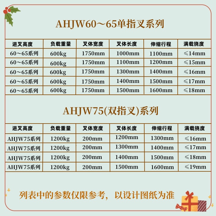 【上图】AHJW集维品牌:堆垛机伸缩货叉(选型表)2