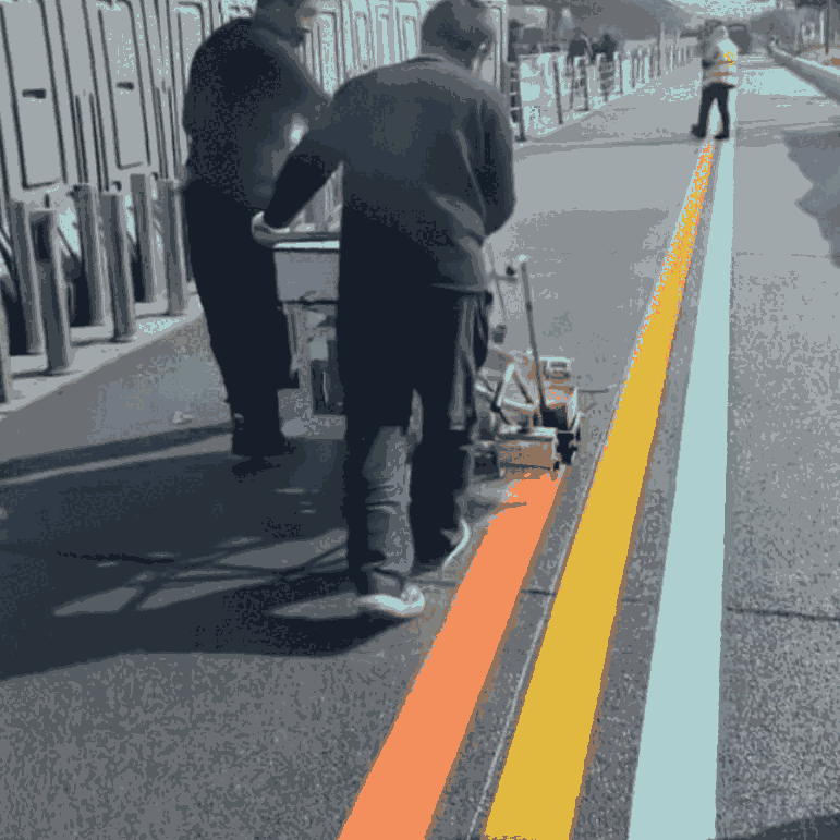4、底漆干后方可进行热熔涂料,在涂标线的同时撒布反光玻璃珠,增加夜间识别性,标线厚度1.5— 1.8MM。