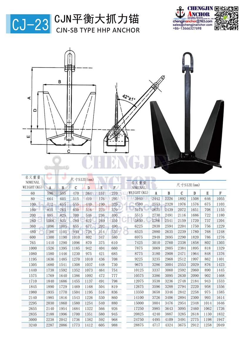 滕州成金船锚专业生产斯贝克锚,霍尔锚,海军锚,日本无杆锚,CJD-14 德尔塔大抓力锚(三角锚),CJT-20 (TW波尔)大抓力锚,CJ-17大抓力锚(MK5海工锚),丹福尔锚,我公司可提供ABS, BV, CCS, DNV, NK, GL, LR, RMRS, KR, 等普通锚证书及大爪力锚证书,欢迎订购!!