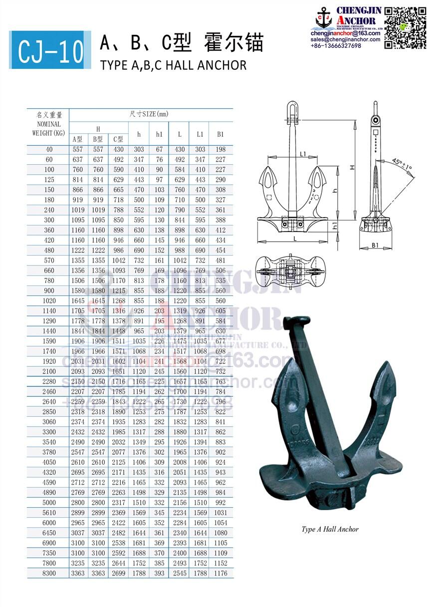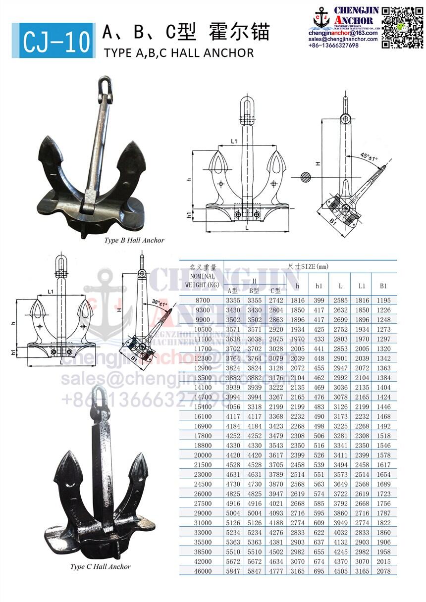 滕州成金船锚专业生产斯贝克锚,霍尔锚,海军锚,日本无杆锚,CJD-14 德尔塔大抓力锚(三角锚),CJT-20 (TW波尔)大抓力锚,CJ-17大抓力锚(MK5海工锚),丹福尔锚,我公司可提供ABS, BV, CCS, DNV, NK, GL, LR, RMRS, KR, 等普通锚船检证及大爪力锚船检证,欢迎订购!!
