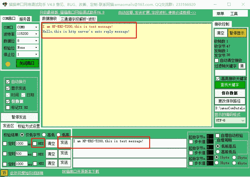 9、HP-ERS-T200重启后,通过串口调试助手模拟设备向HTTP服务器发送POST请求数据,HTTP服务器收到HP-ERS-T200 POST请求后,收到回复对应数据内容。