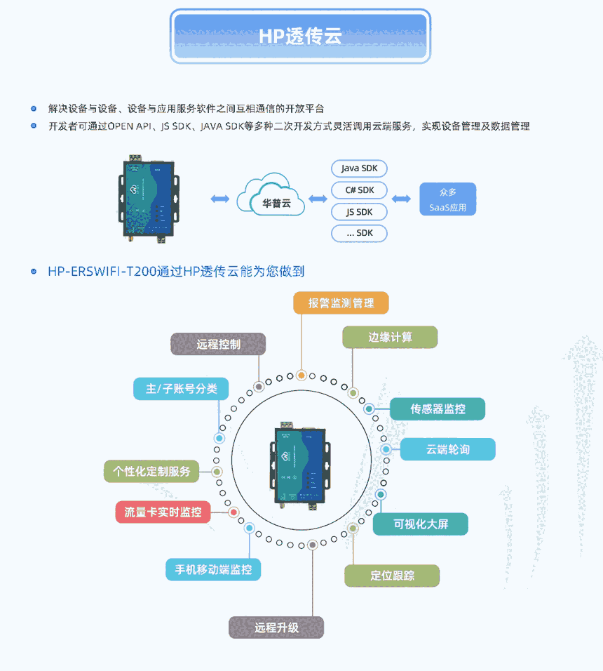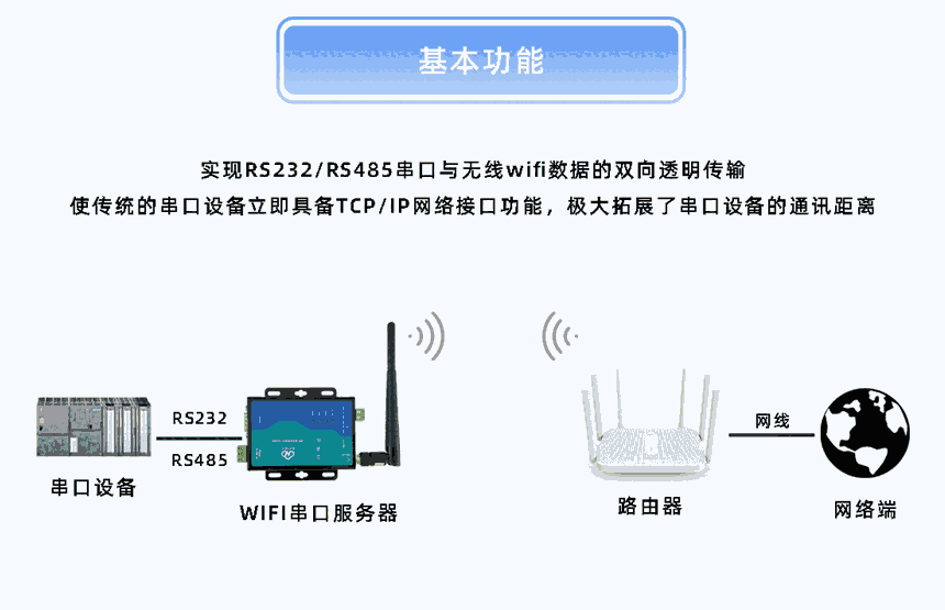 HP-ERSWIFI-T200串口服务器提供串口转WIFI、串口转以太网、以太网转WIFI功能,能够将串口(RS232/485)转换成TCP/IP网络接口,实现串口(RS232/485)与WIFI/以太网的数据双向透明传输。使得串口设备能够立即具备TCP/IP网络接口功能,连接网络进行数据通信,极大的扩展串口设备的通信距离。