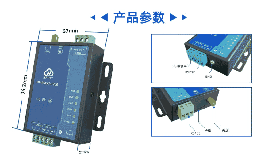 HP-RS4G-T200是华普物联网推出的高可靠性、高速率、低延迟的 4G DTU。支持三大运营商4G网络接入,产品采用工业级设计标准,内置独立硬件看门狗,采用 RS232 和 RS485 两种标准端子接口,RS485完全独立电器隔离,支持多路SOCKET,同时可连接四个服务器,支持自定义心跳包/SN心跳包/1CCID心跳包/1ME心跳包,支持自定义注册包/SN注册包/ICCID注册包/IMEI注册包。
