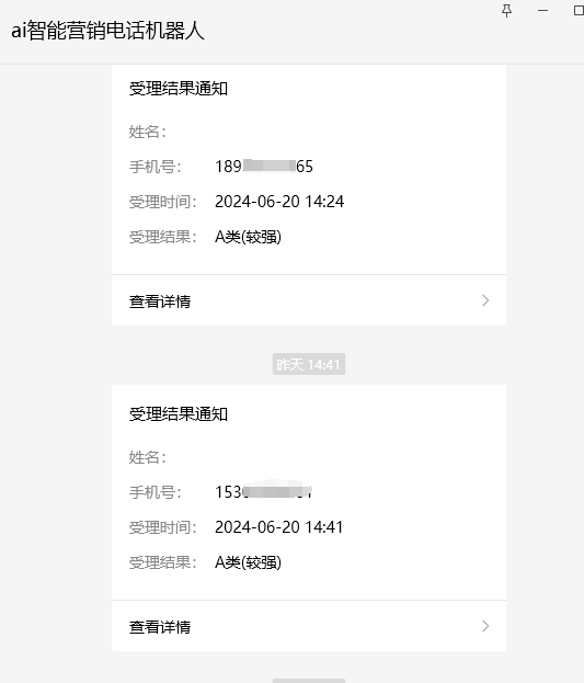 5、客户推送过来之后,人工点进去可以看到客户手机号、通话录音以及文字版的记录,方便针对性回访;
