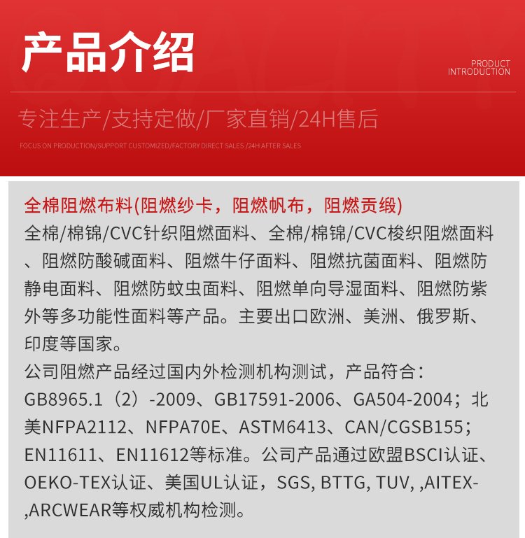 棉锦88/12阻燃面料 三防布防静电 针织斜纹直贡帆布等 品牌 | 新星 | ||