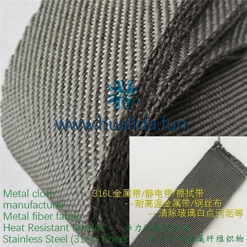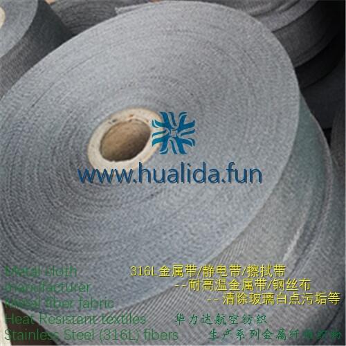 华力达航空纺织自设工厂现货直销纯不锈钢纤维布、织带是由316L不锈钢纤维纱线织成的纯金属纺织品。该产品不仅具备普通纺织品的柔软性、高强度,同时具备不锈钢本身优良的耐高温、耐各种化学品腐蚀的特性。可纺织成各种平纹、斜纹、缎纹机织布和织带,也可做成柔软有弹力的针织布,并能像普通面料一样裁剪和缝制。