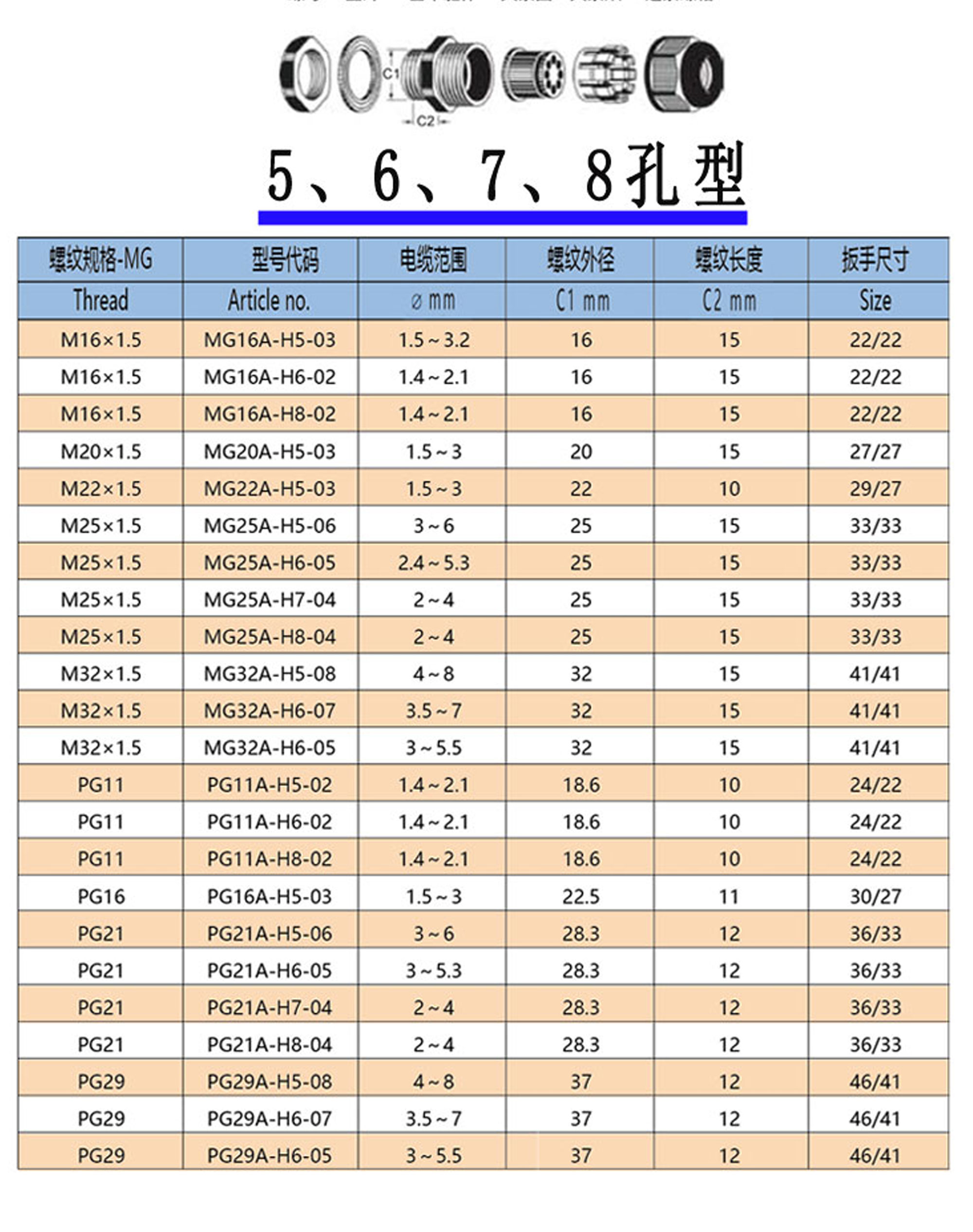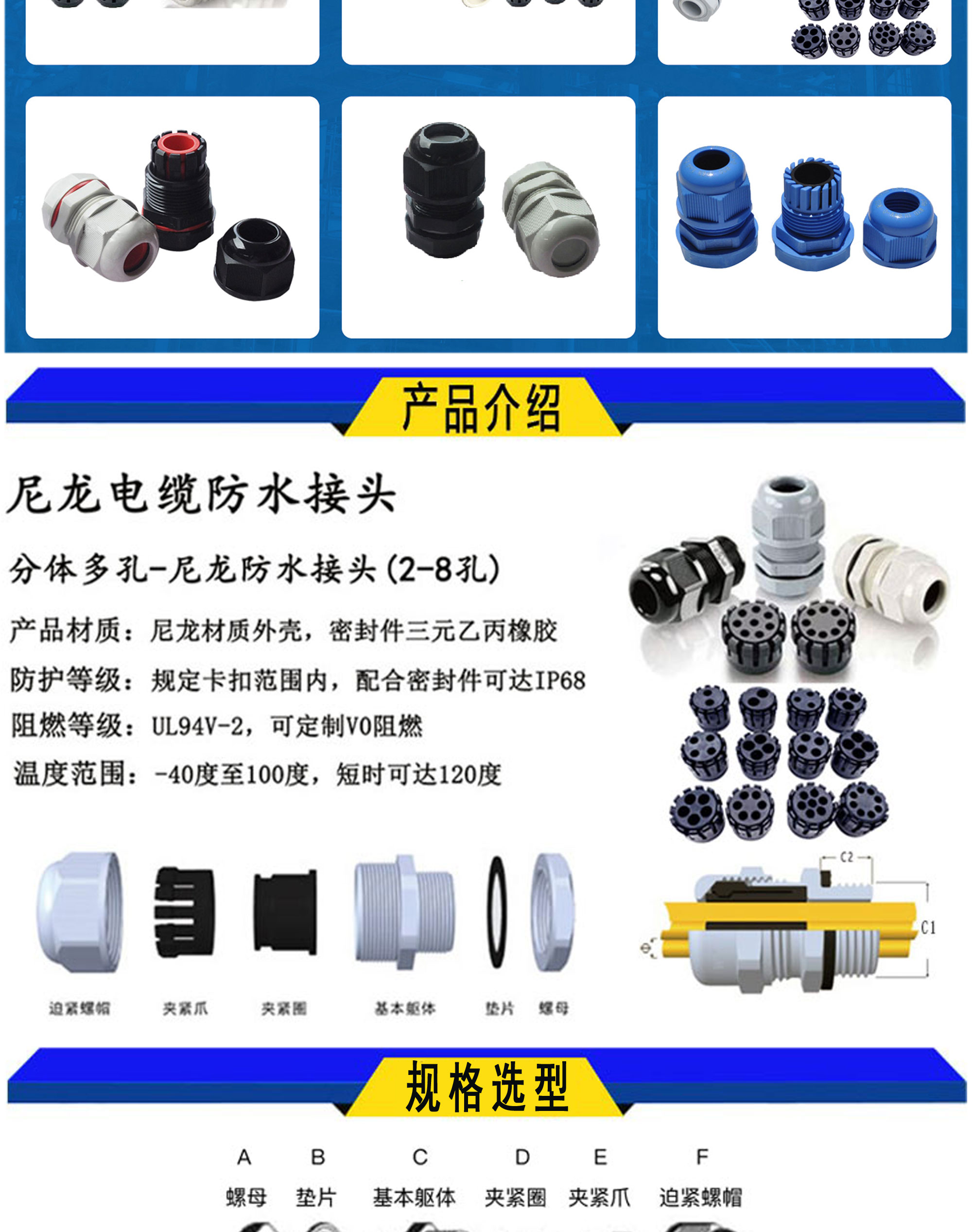 防护等级 | 在规定线径范围内可达IP68 | ||