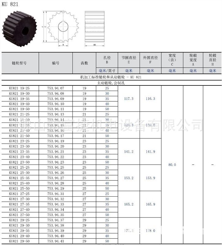 莱克斯诺Rexnord 平顶链板适用链轮 KU 821