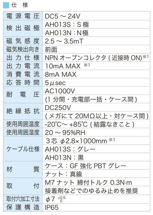 磁感应度 | 2.5 ~ 3.5mT | ||