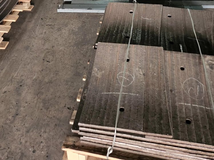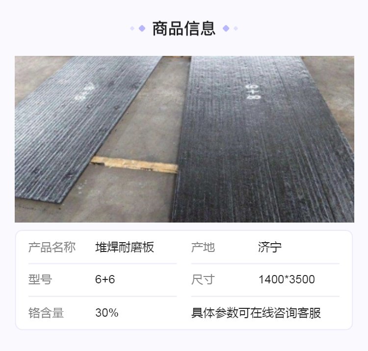 高耐磨复合钢板。它是采用自动金属电弧堆焊方法,在Q235(也可根据客户需要选择基材)整幅钢板上形成过共晶高鉻合金耐磨层。在耐磨复合板中,金属化合物以比较弥漫的形式分布于固溶体基材上,并被实际用作强化相,从而使整个合金的强度、硬度、耐磨性得到很大的提高。