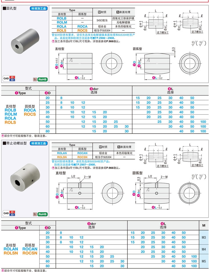 直柱形具体型号:ROLSN20、ROLSN25、ROLSN30、ROLSN35、ROLSN40、ROLSN50、ROLSN60、ROLSN80、