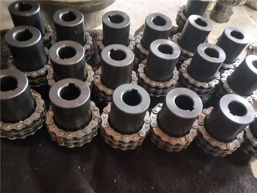 湖州双排5016滚子链联轴器口罩机配套设备由双排链条和半联轴器扣在一起进行传动,链条联轴器是利用公用的链条,同时于两个齿数相同的并列链轮啮合,不同结构型式的链条联轴器主要区别是采用不同链条,常见的有双排滚子链联轴器、单排滚子链联轴器、齿形链联轴器、尼龙链联轴器等。