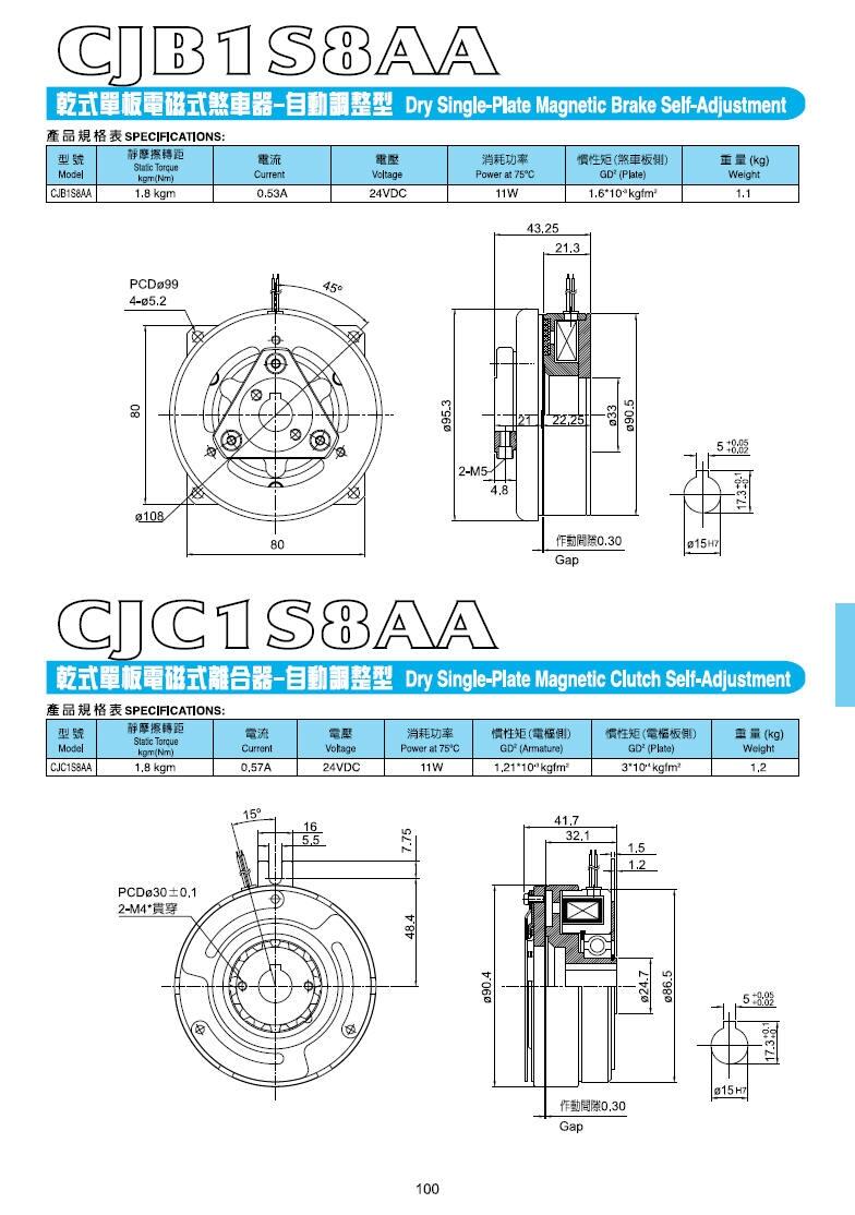 干式单板电磁式刹车器-自动调整型:CJB1S8AA,CJB1S8AB,