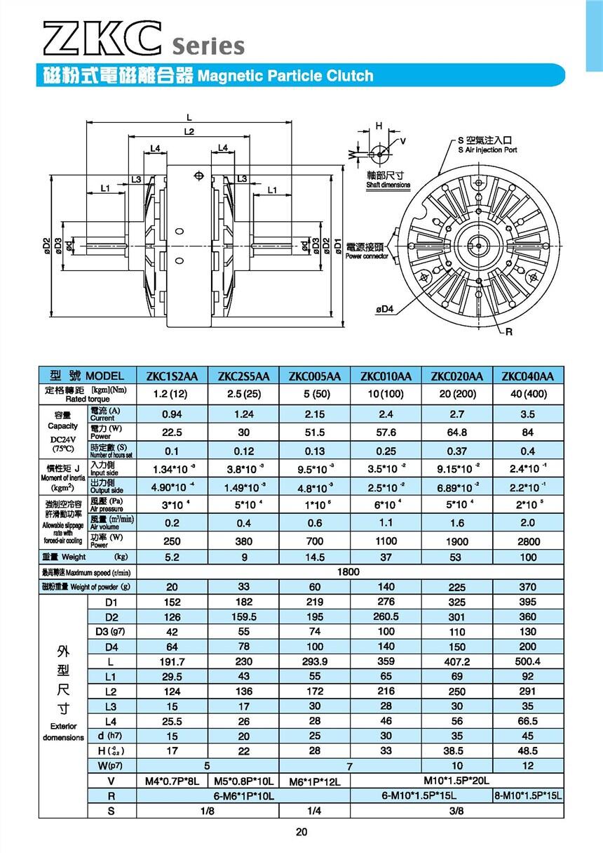 磁粉式电磁离合器:ZKC1S2AA/ZKC2S5AA/ZKC005AA/ZKC010AA/ZKC020AA/ZKC040AA