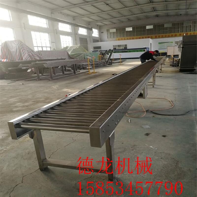无动力滚筒输送机 又称辊道。有长辊道和短辊道两种。长辊道的辊子表面形状有圆柱形、圆锥形和曲面形几种,以圆柱形长辊道应用最广。