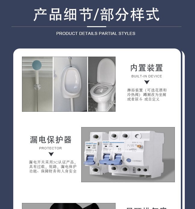 ????? 移动厕所不受任何工作环境的限制,外型结构轻巧,颜色搭配合理,适合于车站、码头、旅游费点、别墅区、新建区大型工地、广场、人口密集的公共场所及繁华 商业街等。移动公厕具有可移动、可组合、方便运输等优点。