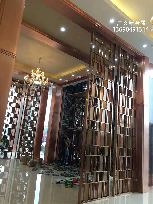 不锈钢屏风设计师除了尺寸上要多多注意之外,其中花纹的排列也非常重要,花纹横向的间距,尽量不要涉及的太过密集,密密麻麻的感觉反而没有美感,而且人工的价格也会非常高。设计师真正重要的就是保持屏风上下、左右对称,这样不锈钢屏风在安装完成时候才会让人感到舒服,而不是莫名奇妙的压抑感,尤其是对强逼症的人来说,也会觉的非常舒服。