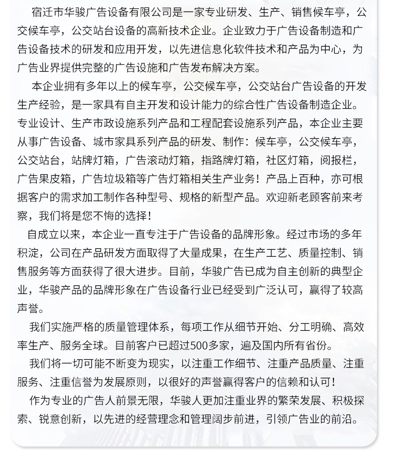 宿迁市华骏广告设备有限公司 智能客服智能客服在线解答,若涉及资金打款事宜,务必与厂家进行电话确认。