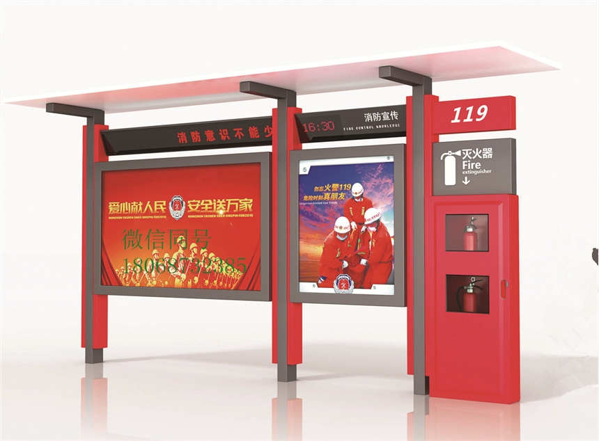 3、宣传栏开启方式:液压支撑杆,节省人力,双面开启;
