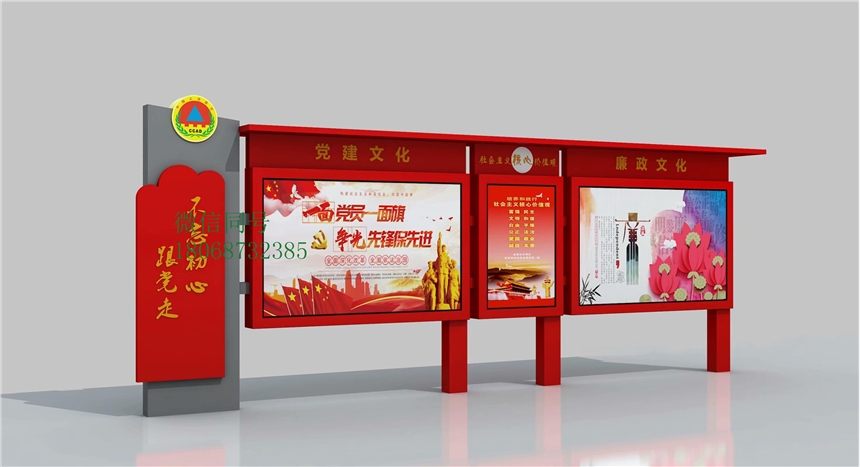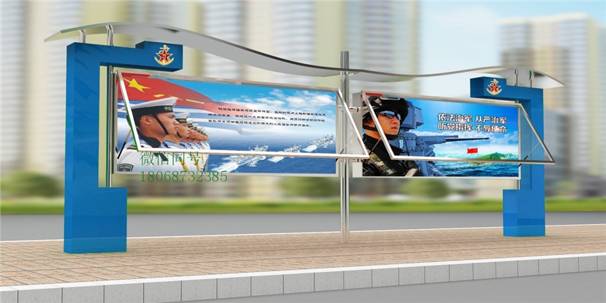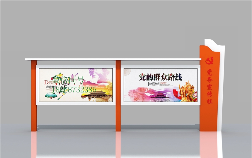 9、宣传栏外观设计:颜色任选,喷塑、喷漆;挂壁式、落地式、吊装式、组合式;