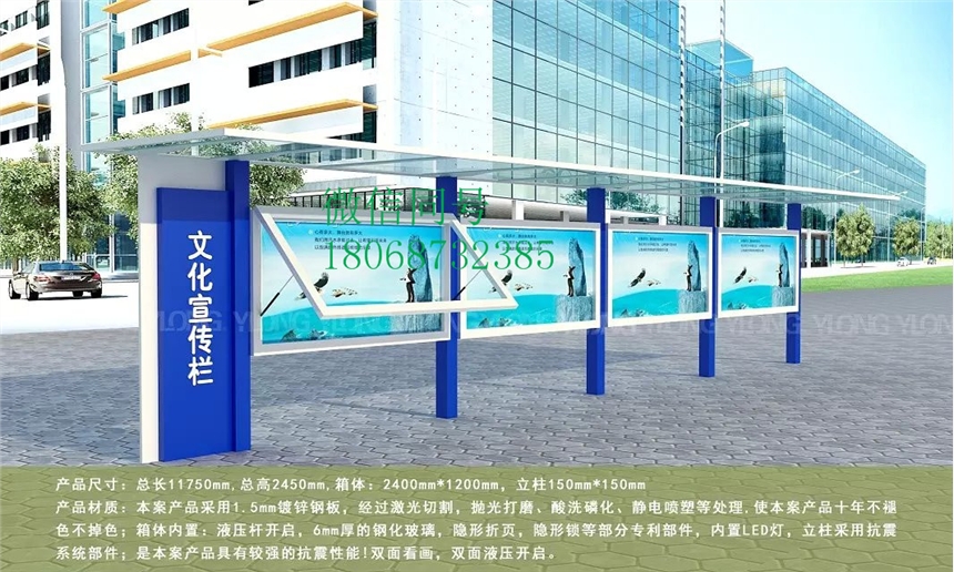 我们为您提供-室内外宣传栏,广告灯箱,公交候车亭,太阳能灯箱,LED灯箱,花草牌,路名牌,果皮箱,精神堡垒,广告机等。