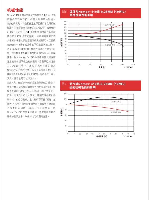 在氮的沸点(77K)下,NOMEX绝缘纸T410及NOMEX993、994型层压板的抗拉伸强度都室温下的强度值;